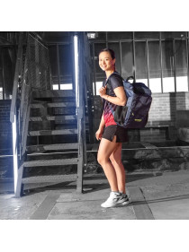 Un sac à dos confortable avec un grand compartiment principal et de nombreux compartiments et possibilités de rangement. Un grand compartiment doté d'un compartiment à l’intérieur pour ordinateur portable, un petit compartiment zippé à part sur la partie frontale et deux compartiments latéraux pour boissons et autres. Un rembourrage confortable du dos et sangles de portage. Matière : Polyester-Jacquard d'excellente qualité Coloris : marine Dimensions : env. 48 x 31 x 14 cm